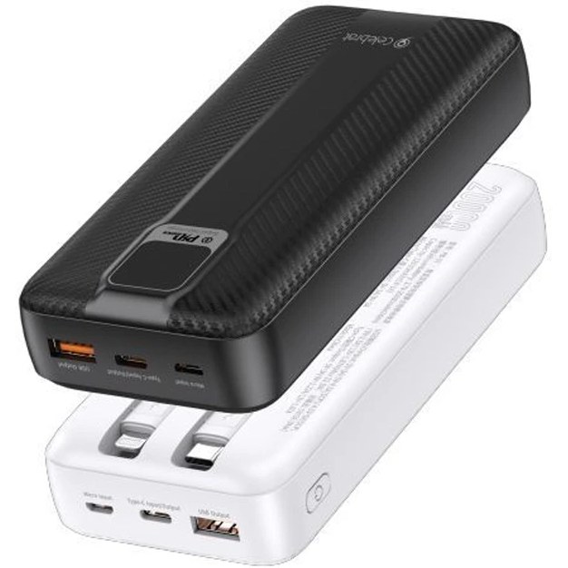 پاوربانک کابل سرخود تایپ سی و آیفون سلبریت 74 وات pb-07 ظرفیت 20 هزار میلی آمپر