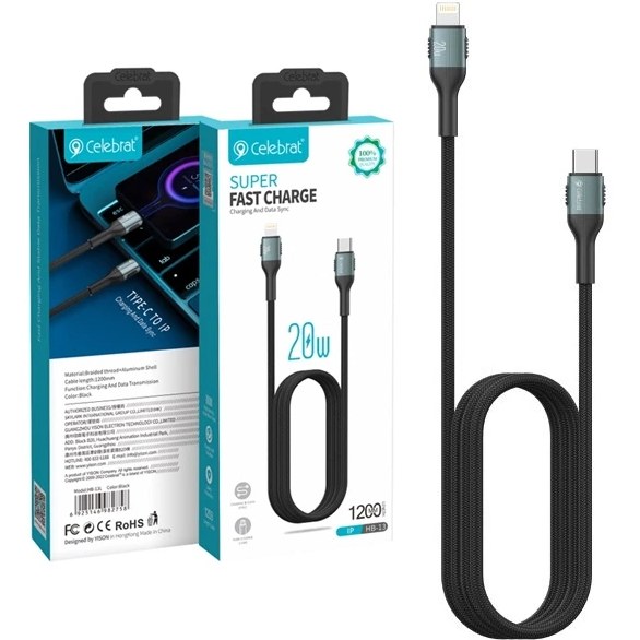 کابل انتقال دیتا و شارژ تایپ سی به لایتنینگ C TO ip سلبریت مدل Celebrat HB-13توان 20 وات گارانتی یکساله زودبیار